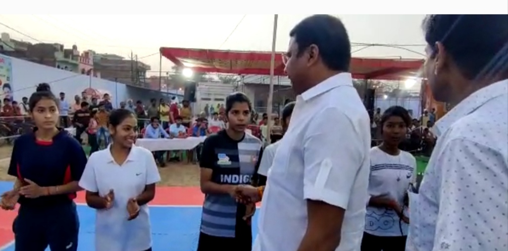 कबड्डी टीम से परिचय करते भिंड विधायक संजीव सिंह कुशवाह