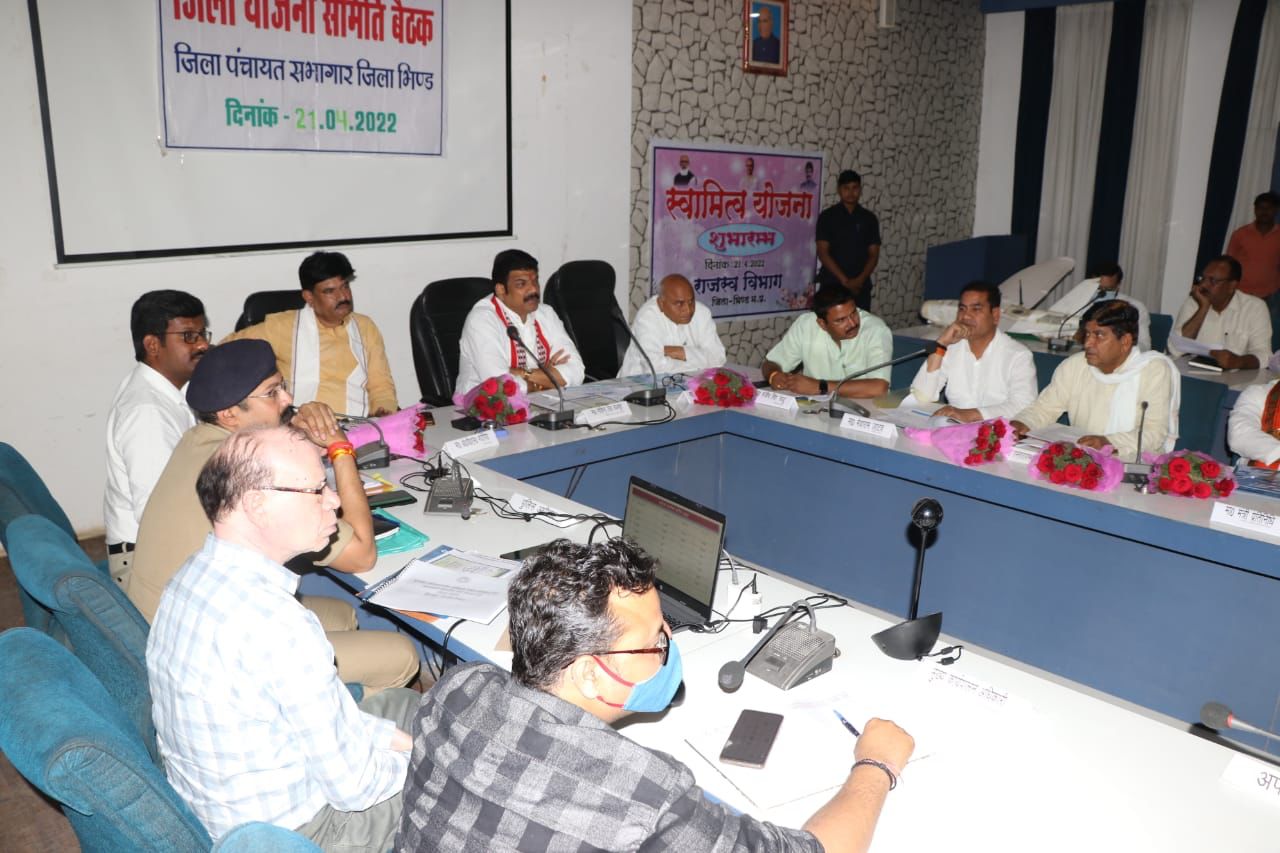 मध्यप्रदेश शासन के परिवहन एवं राजस्व विभाग मंत्री एवं भिण्ड जिले के प्रभारी मंत्री श्री गोविन्द सिंह राजपूत की अध्यक्षता में जिला योजना समिति की बैठक जिला पंचायत भिण्ड के सभागार में आयोजित की गईं। बैठक में सहकारिता मंत्री डॉ अरविंद सिंह भदौरिया वर्चुअली, नगरीय विकास एवं आवास राज्यमंत्री श्री ओपीएस भदौरिया, बीज विकास निगम के उपाध्यक्ष श्री राजकुमार कुशवाह, लहार विधायक श्री गोविंद सिंह, भिण्ड विधायक श्री संजीव सिंह कुषवाह, गोहद विधायक श्री मेवाराम जाटव, जिला पंचायत अध्यक्ष श्री रामनारायण हिण्डोलिया, कलेक्टर डॉ सतीश कुमार एस, पुलिस अधीक्षक श्री शैलेंद्र सिंह चौहान जिलाध्यक्ष श्री नाथू सिंह गुर्जर सहित विभिन्न विभागो के जिला अधिकारी उपस्थित थे।