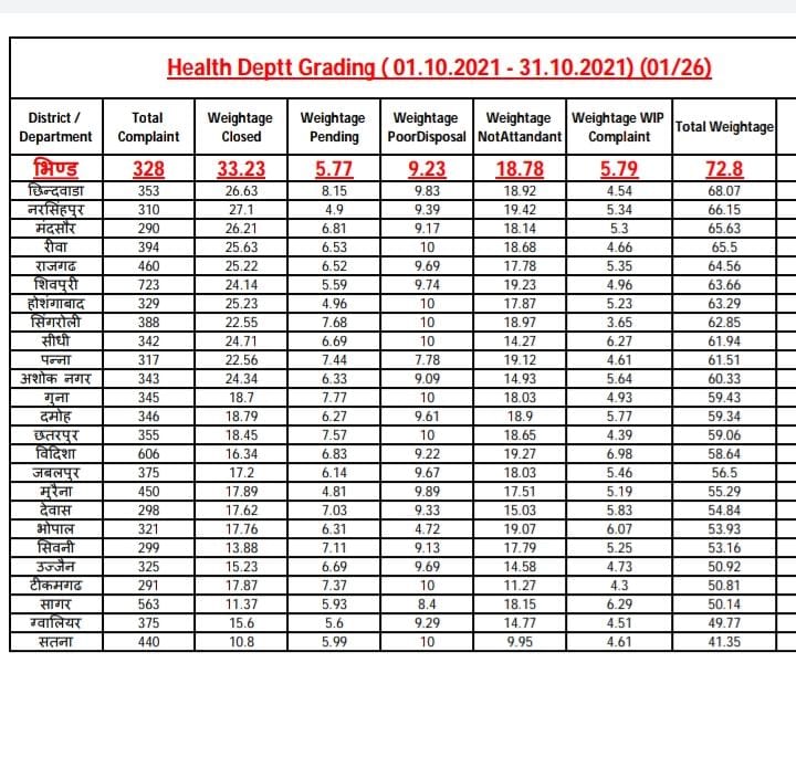 : सीएम हेल्पलाइन शिकायत निवारण में भिंड स्वास्थ्य विभाग प्रदेश में अव्वल