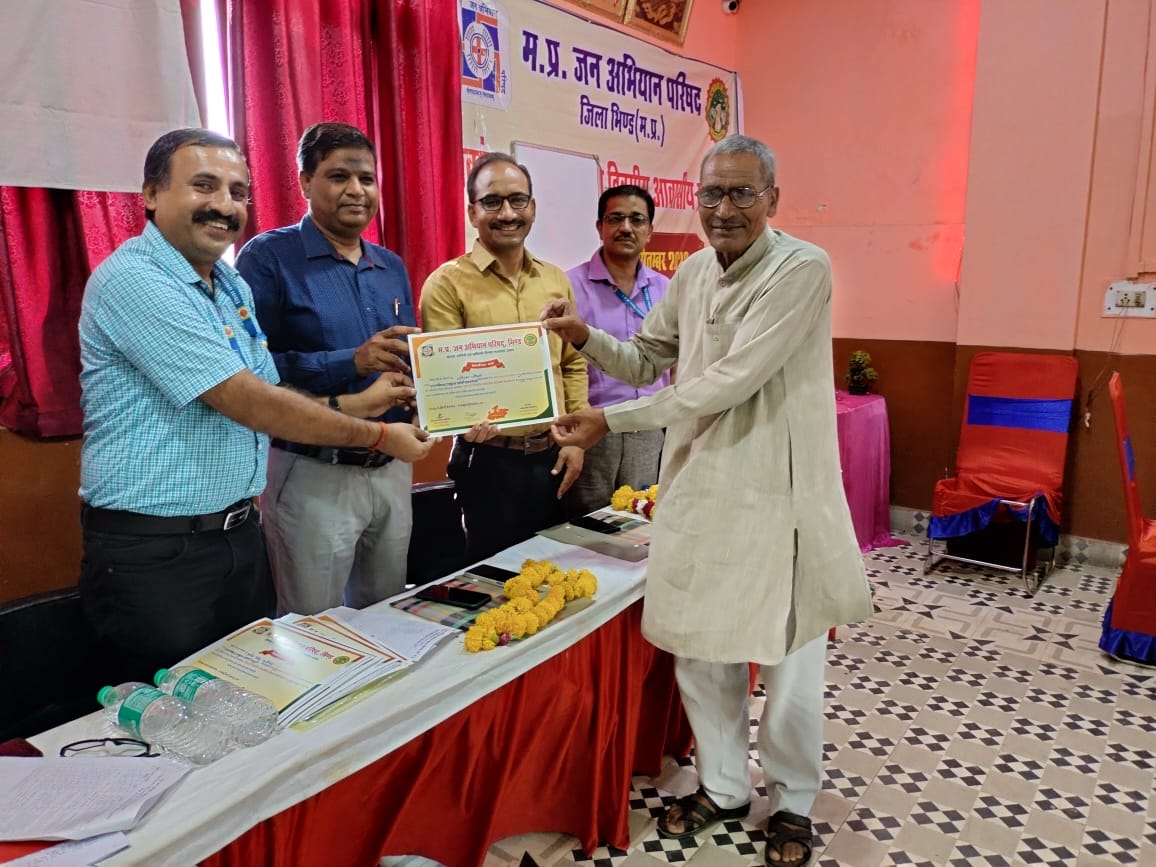 स्थानीय विशाल होटल के सभागार में समापन अवसर पर बोलते हुए वरिष्ठ समाजसेवी श्रवण पाठक ने कहा कि यदि मैं अब तक के जन अभियान परिषद के कार्यों तथा विभागों के प्रशिक्षणों की बात करें तो यह सबसे व्यवस्थित और सबसे बेहतर प्रशिक्षण जन अभियान परिषद का है। नवांकुर संस्थाओं के इस प्रशिक्षण में मेरी यह सलाह है कि आप अपने लक्ष्य की ओर एकजुट होकर लग जाएं। हो सकता है कि आपकी गतिविधियों से लोगों को यह लगे कि आपको बहुत बड़ी धनराशि मिल रही है लेकिन इन सबको ध्यान में ना रखते हुए हमें समाज में ऐसे नेतृत्वकर्ता तैयार करने हैं जो कि आगे आने वाली पीढ़ी को एक नई दिशा और एक नया समाज देंगे। यह बात भी सत्य है कि नवांकुर संस्थाओं के लिए जन अभियान परिषद ने पहले से ही भूमिका तैयार कर दी है अब उन्हें सिर्फ अपने आप को सिद्ध करना है और जो संस्थाएं चयनित हुई हैं वे अपने आप में इतनी सक्षम हैं कि उनको पता है कि वह अपने आप को किस प्रकार से क्षेत्र में स्थापित करते हुए ग्राम विकास की अवधारणा को पूरा करेंगे। वरिष्ठ खेल प्रशिक्षक एवं समाजसेवी श्री राधे गोपाल यादव ने कहा कि जन अभियान परिषद हर क्षेत्र में बहुत अच्छे ढंग से काम कर रही है उन्हें अब चाहिए कि वह खेलों में भी अपनी अपना विस्तार करें जिससे कि नए युवा खिलाड़ी निकले और उन्हें एक नई पहचान मिल सके भिंड जिले की एक विशेषता है कि यहां कई ऐसे खिलाड़ी निकले हैं जिन्होंने विश्व पटल पर अपनी एक अलग पहचान बनाई है मैं चाहता हूं कि जन अभियान परिषद के माध्यम से ऐसे खिलाड़ियों को एक नई पहचान मिले जिससे कि भावी पीढ़ी प्रेरित होकर इस क्षेत्र में अपना कैरियर बना सके। इस प्रशिक्षण को देखकर मैं यह कह सकता हूं कि उत्कृष्ट दर्जे का प्रशिक्षण है और इसमें उन सारे तथ्यों का, उन सारे विषयों को समाहित किया गया है जो ग्राम विकास के लिए संजीवनी हैं। जिला समन्वयक के प्रताप सिंह ने कहा कि इस प्रशिक्षण के माध्यम से पहले दिन विभिन्न विषयों के जरिए टीम जन अभियान ने नवांकुर संस्थाओं को सशक्त करने और उनकी भूमिका क्या होगी इस विषय पर विस्तार से प्रकाश डाला है। आज हमारे विकासखंड समन्वयक शेष बचे विषयों को संपूर्ण रुप से आपके समक्ष रखेंगे इन दो दिवसों में विभिन्न विषय विशेषज्ञों के माध्यम से प्रत्येक विषय को विस्तारपूर्वक समझाया गया है इस दौरान राज्य कार्यालय भोपाल से महानिदेशक बी आर नायडू, कार्यपालक निदेशक डॉ धीरेंद्र पांडेय और क्रिस्प के विशेषज्ञों ने भी नवांकुर संस्थाओं का मार्गदर्शन किया। कई गतिविधियां भी आयोजित कराई गई तथा शिक्षकों द्वारा प्रशिक्षणार्थियों को प्रशस्ति पत्र भी प्रदान किए गए अंत में सेक्टर वाइज मेंटर और नवांकुर संस्थाओं को एक साथ बैठाकर कार्य योजना पर विस्तृत चर्चा की गई। 