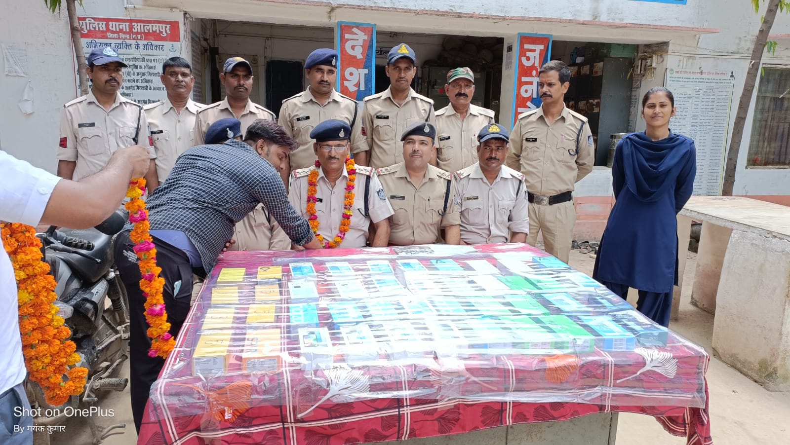आलमपुर थाना क्षेत्र कस्बे से बीते रोज रवि कुशवाहा की दुकान से चोरी हुए थे 4:30 लाख से अधिक की कीमत के 43 एंडॉयड मोबाइल, गल्ले से चोरी हुआ 1100 भी बरामद