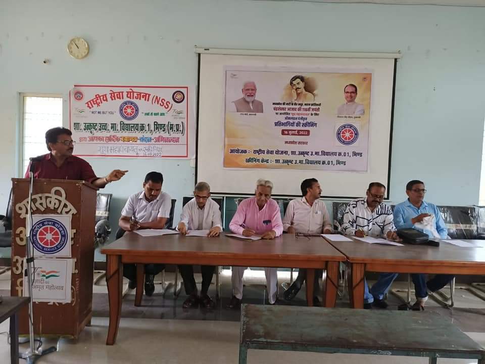 मध्यप्रदेश की माटी में जन्मे वीर सपूत अमर शहीद स्वतंत्रता सेनानी चंद्रशेखर आजाद की 116 वीं जयंती के अवसर पर 23 और 24 जुलाई को भोपाल में आयोजित होने वाली यूथ महापंचायत के लिए आज भिंड जिले के 5 स्क्रीनिंग केंद्रों पर ऑनलाइन पंजीकृत युवा प्रतिभागियों का चयन किया गया। शासकीय उत्कृष्ट उच्चतर माध्यमिक विद्यालय क्र.01, भिंड केंद्र पर राष्ट्रीय सेवा योजना के संयोजन में प्राचार्य श्री पी.एस. चौहान और जिला नोडल अधिकारी प्रोफेसर श्री हरीशंकर कंसाना के मार्गदर्शन में युवाओं का चयन किया गया। निर्णायक मंडल सदस्य प्रोफेसर श्री इकबाल अली पर्यावरणविद, वरिष्ठ पत्रकार श्री रामानंद सोनी, समाजसेवी शिक्षा शास्त्री श्री आर.एन. तिवारी, प्रोफेसर श्री रामानंद शर्मा और पूर्व एनसीसी अधिकारी व्याख्याता श्री जे.एन. पाठक द्वारा जिला युवा महापंचायत हेतु उपस्थित युवाओं का चयन किया गया, जो 18 जुलाई को राज्य महापंचायत हेतु अग्रणी महाविद्यालय एमजेएस भिण्ड में सहभागिता करेंगे। यहां से 6 से 8 उत्कृष्ट युवाओं का चयन भोपाल में होने वाली युवा महापंचायात के लिए किया जायेगा।