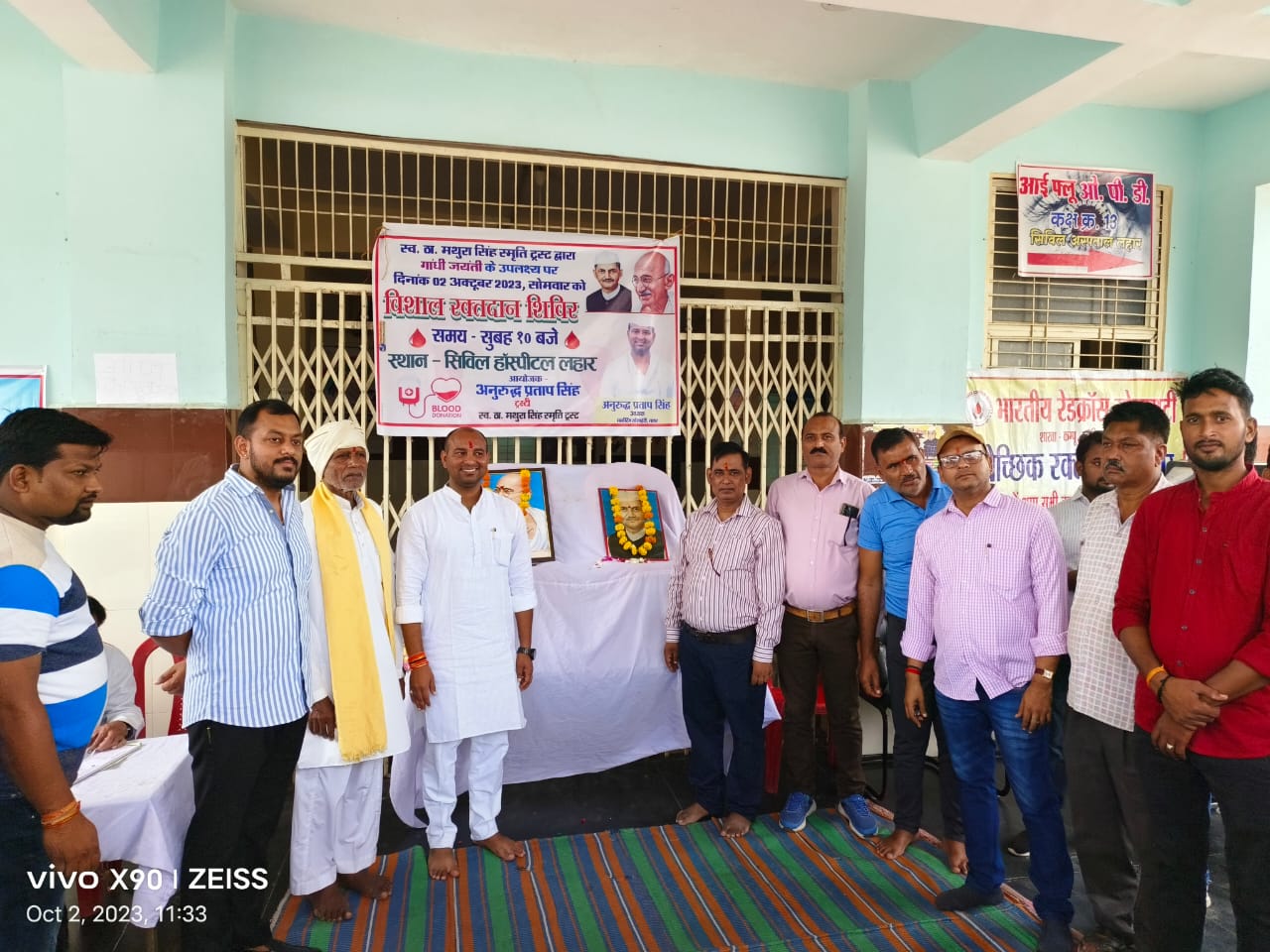 लहार में स्व. ठा. मथुरा सिंह स्मृति ट्रस्ट द्वारा गांधी जयंती के उपलक्ष पर रक्त दान शिविर का अयोजन किया गया