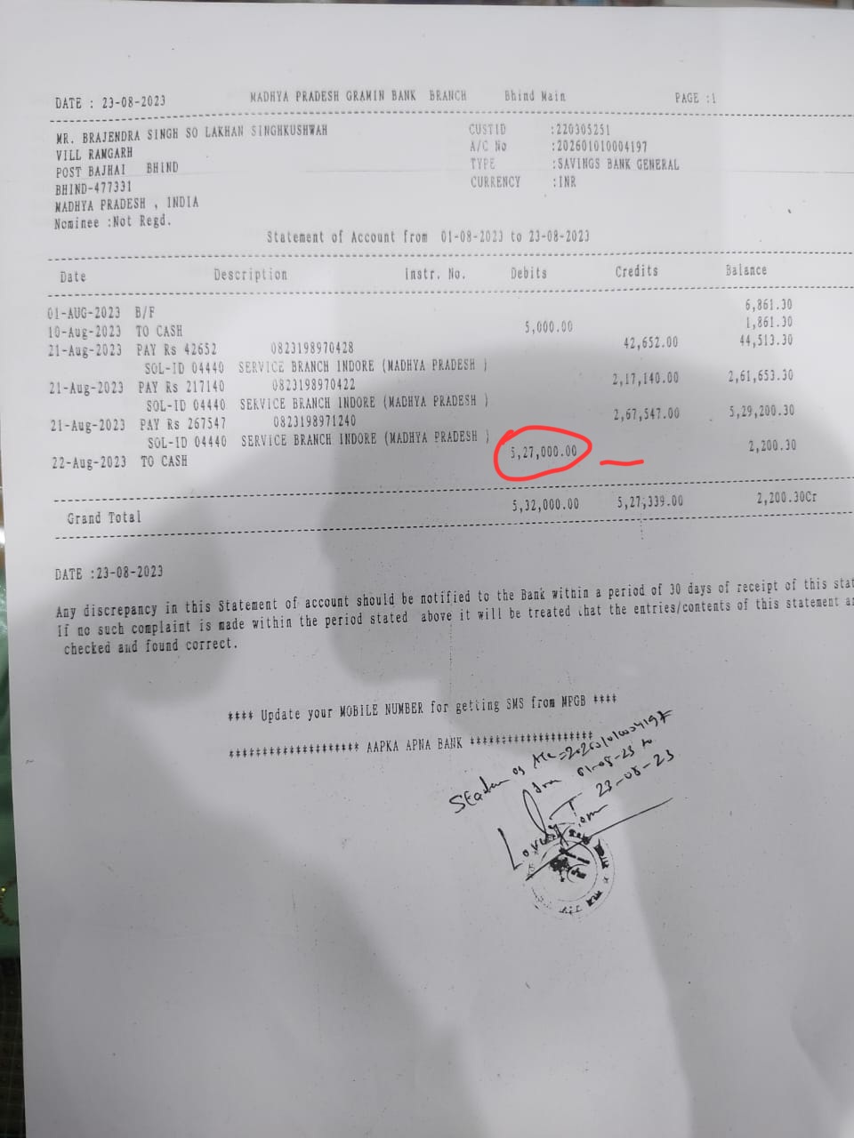 उक्त सम्बन्ध में अनुविभागीय अधिकारी लहार रविन्द्र बिलवाल के मार्गदर्शन में थाना प्रमारी लहार इंस्पेक्टर वरुण तिवारी को आज 22 अगस्त 2023 को मुखबिर द्वारा सूचना प्राप्त हुयी थी। इसी क्रम में यह बड़ी कार्यवाही की है।