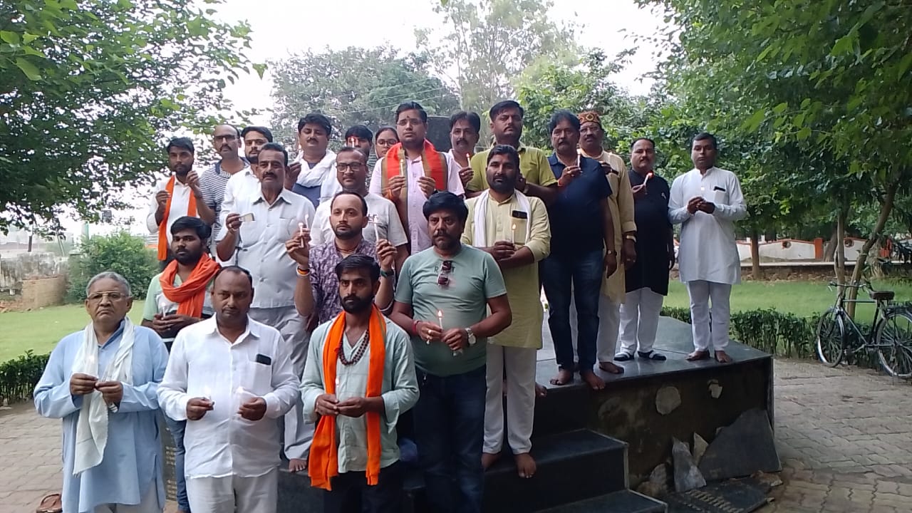 भारतीय जनता पार्टी के कार्यकर्ताओं ने लेह में सेना के एक ट्रक के दुर्घटनाग्रस्त हादसे में जेसीओ सहित 9 जवान शहीद हो जाने पर सर्किट हाउस स्थित शहीद स्तंभ पर भावपूर्ण श्रद्धांजलि अर्पित की।इस अवसर पर भाजपा कार्यकर्ताओं ने शहीद स्तंभ पर इस घटना में शहीद हुए जवानों को याद करते हुए पुष्प अर्पण कर एवं मोमबत्ती जलाकर भावपूर्ण श्रद्धांजलि अर्पित की।