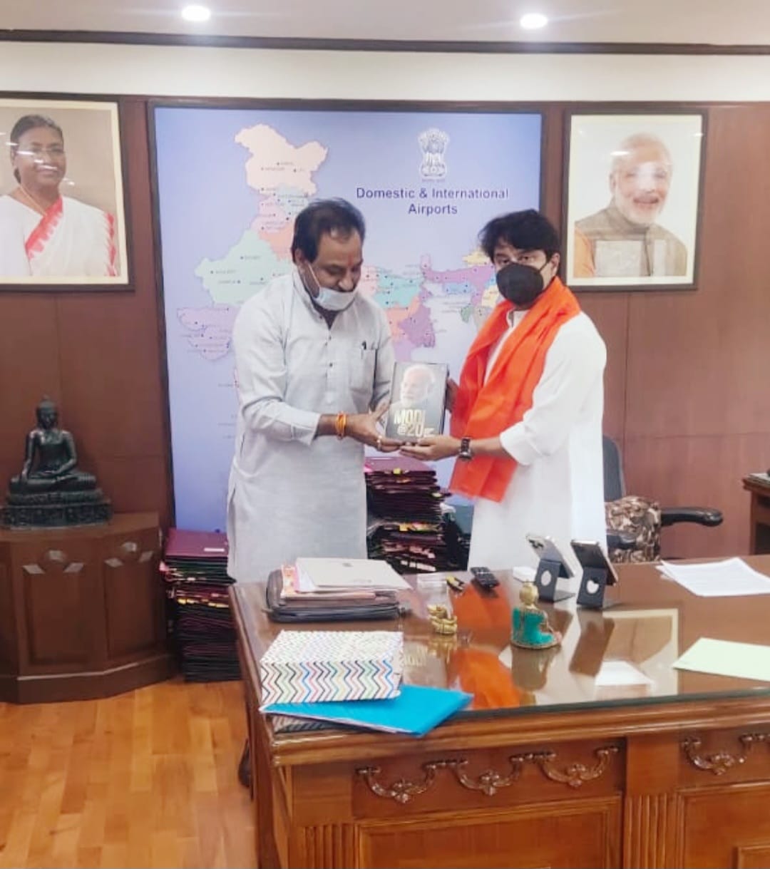 प्रधानमंत्री पर लिखी गई पुस्तक की भेंट