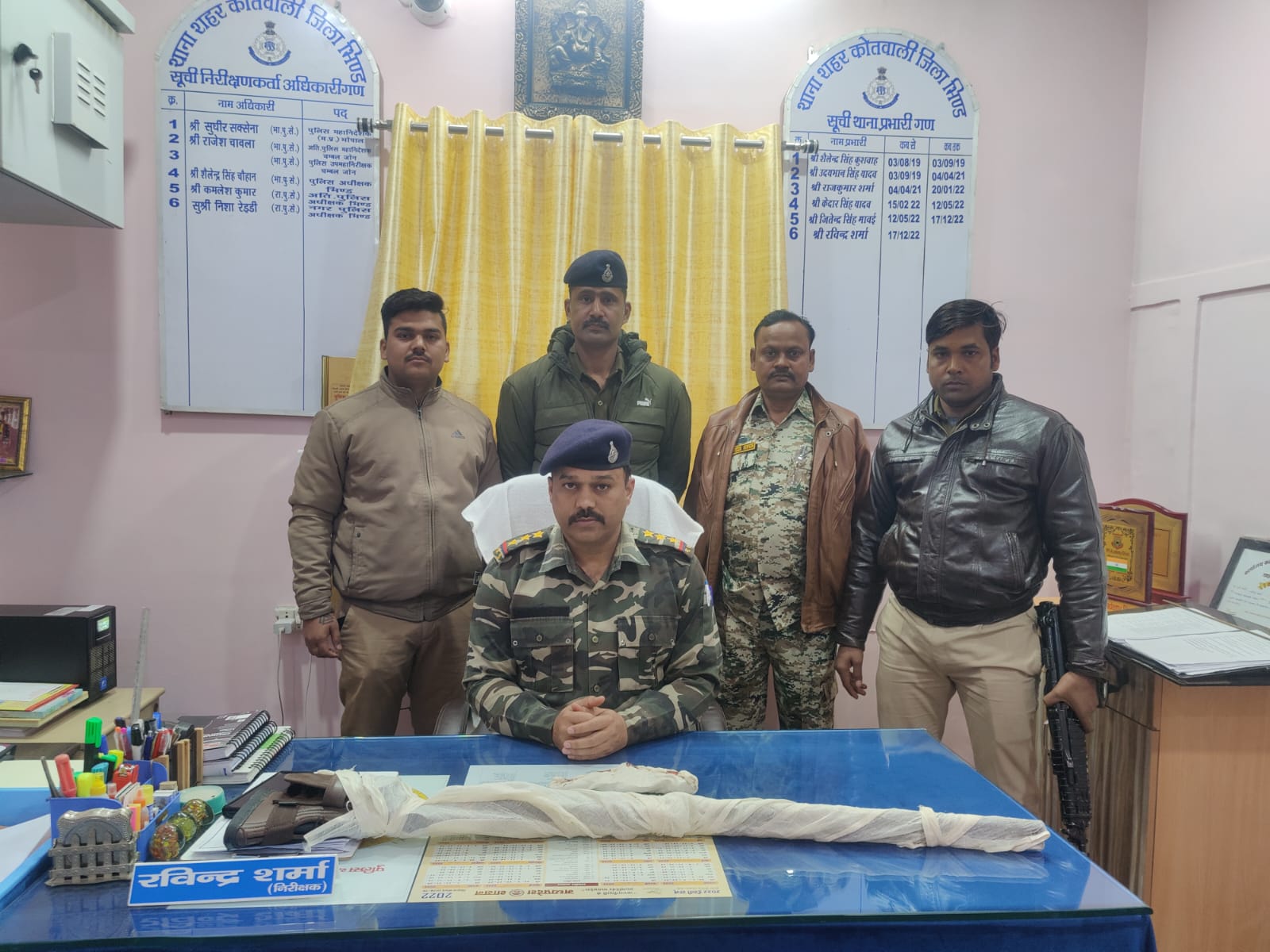 थाना प्रभारी कोतवाली निरीक्षक रविंद्र शर्मा, उपनिरीक्षक अतुल सिंह भदोरिया, उपनिरीक्षक देवीदीन अनुरागी, उपनिरीक्षक राजेश गौर, प्रधान आरक्षक अवधेश तोमर, त्रिवेंद्र सिंह, सतेंद्र राजावत, कुलदीप शुक्ला,रामकांत शर्मा,आरक्षक गिर्राज यादव, राहुल राजावत, आनंद त्रिपाठी ,अभिषेक यादव, अमन राजावत की महत्वपूर्ण भूमिका रही।